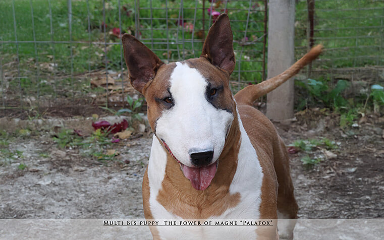 Frankie es un Bull Terrier excepcional, importado directamente de Italia, con un linaje que destaca por su calidad y prestigio. Hoy, sus descendientes ya están dejando huella en los mejores eventos de México y Estados Unidos, consolidando su legado en el mundo de las competencias más importantes del mundo del Bull Terrier.